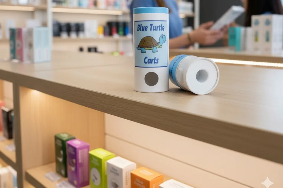 For 510 carts and slim disposables, long paper cylinder tubes protect the pen, display tall on shelf, and avoid the clacky plastic vibe. Our slim silver tube (spot UV + foil) shows how a simple cylinder becomes “gift-ready.” Add a die-cut foam plug or paper pulp tray for stability, keep it plastic-lite. Check the Vape Cartridge Packaging ideas if you run pens and pods.