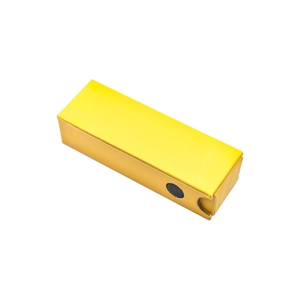 This 8×3×1.5 cm cardboard drawer box features a compliant child-resistant button and custom paper insert shaped for cannabis pods. Designed for safety and compliance, it keeps children protected while securing products. Fully customizable in size, style, and printing to match your brand.