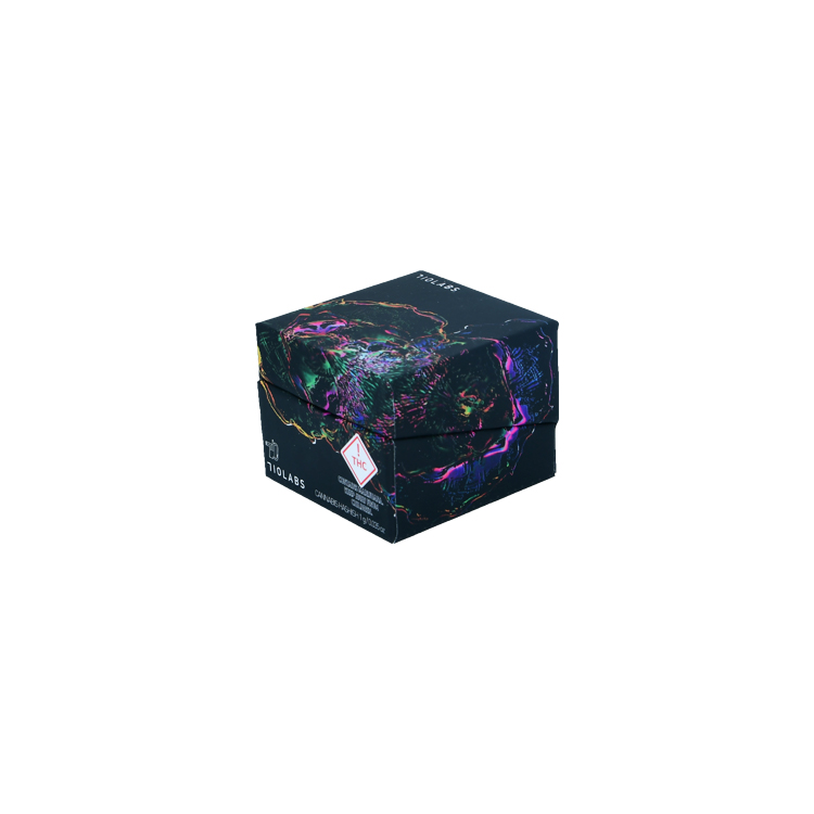 If you are looking for the similar packaging style to 710 labs, or the original manufacturer to produce your own packaging, we are the answer to you. As the authorized packaging supplier for 710 labs, we not only supply the paper packaging for their products, but also help them work out their designs on newest packaging. This magnetic cannabis concentrate container is the hottest trend in this industry. The surface of this box is laminated by soft-touch film. We do the offset printing for most patterns and texts on the box. The dimension of this box is 6*6*5 cm, which can be suitable for the 5ml glass jars. If you want to use this same style for your own products, please feel free to contact us.